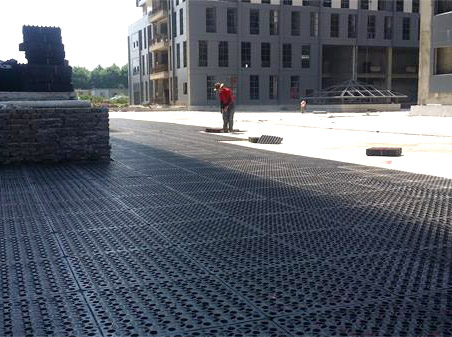 该种板材自身就具有蓄水、排水两种综合功能,板材具有空间刚度高的特点,抗压性明显优于同类产品(可以通过现场试验检验),能够承受400Kpa以上的高抗压负荷,同时可以承受在种植顶板回填土过程中机械碾压的极端负荷情况。结合土工布一起使用,可以避免细颗粒基质堵塞排水通道,保持排水通畅和空气流通,从而形成一个完整的、新型的组合过滤蓄水排水系统,是传统滤水材料的良好替代品。