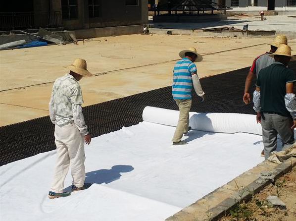 蓄排水板的安装施工根据设计图要求铺设,板材采用扣合的搭接方式。