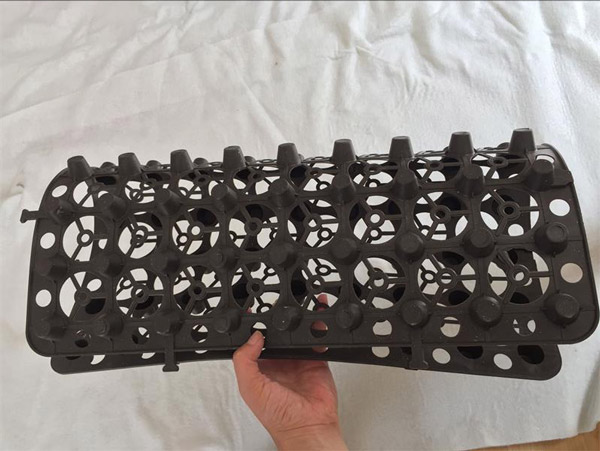 该种板材自身就具有蓄水、排水两种综合功能,板材具有空间刚度极高的特点,抗压性明显优于同类产品(可以通过现场试验检验),能够承受400Kpa以上的高抗压负荷,同时可以承受在种植顶板回填土过程中机械碾压的极端负荷情况。结合土工布一起使用,可以避免细颗粒基质堵塞排水通道,保持排水通畅和空气流通,从而形成一个完整的、新型的组合过滤蓄水排水系统,是传统滤水材料的良好替代品。